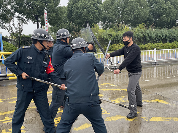 演练过程中,面对模拟“歹徒”的突然袭击,校卫队反应迅速、配合默契,第一时间启动应急预案,运用盾牌、钢叉等专业防暴器械,与驻校警务人员协同作战,迅速将“歹徒”制服。整场演练组织有序、处置高效,充分展现了永利官网安保队伍过硬的业务素质和应急能力。