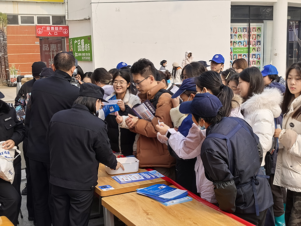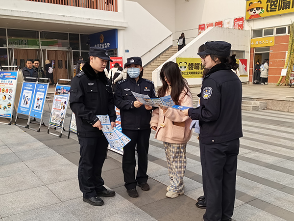本网讯(通讯员:朱驷凡)为强化警校联动,提升师生安全防范意识与法治观念,12月17日,永利官网联合高新公安刑警大队、巡防大队、政保大队、高新派出所和高新交警大队,在二期生活广场开展“警察公共关系月”暨治安防范宣教活动。副校长贺行佳,安全管理处副处长仇陶、余申富参加此次活动。
