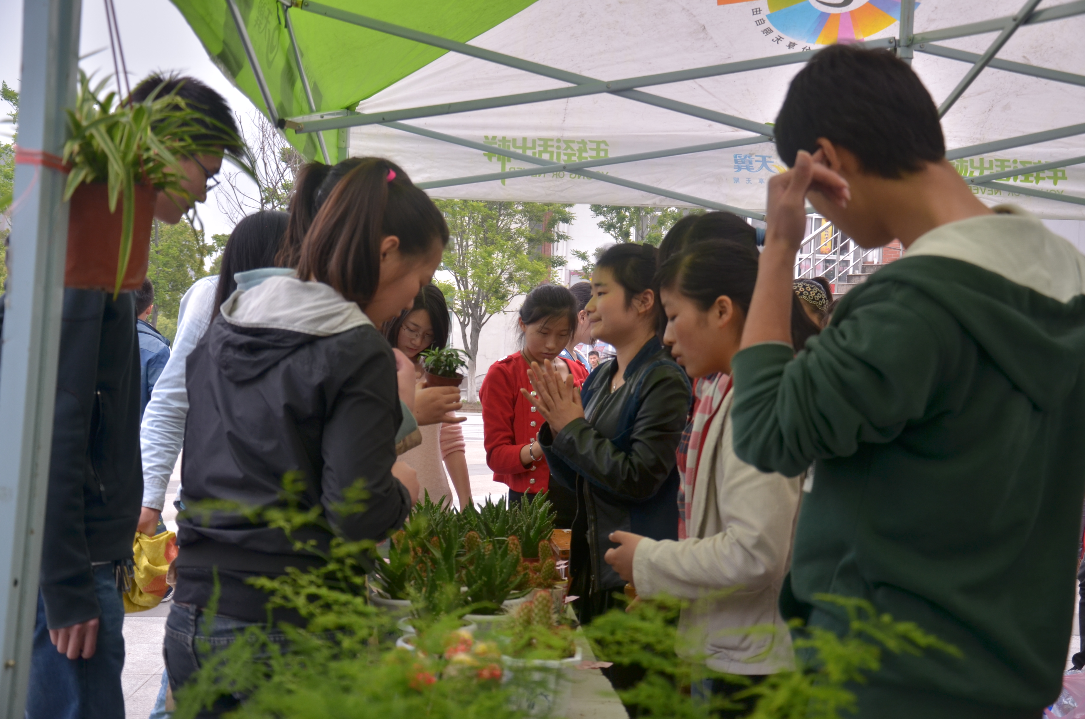 中午放学,翰林广场绿色的帐篷底下挤满了围观的同学。用手机移动客户终端扫取“携诚华园服务中心”二维码...