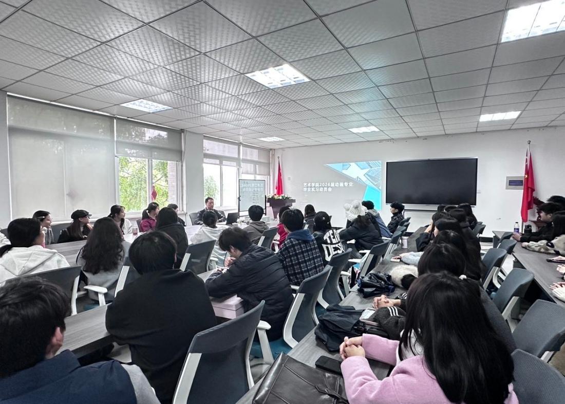 本网讯(通讯员:朱书悦)近日,艺术学院隆重召开关于2026届毕业实习动员大会,视觉传达设计专业、美术学专业、动画专业、环境设计专业、表演专业分别举行了专题毕业实习动员会议,为即将踏入实习岗位的毕业生们指明方向、明确要求。
