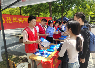 本网讯(通讯员:张大勇) 为增强师生防诈意识,营造安全校园环境,4月25日中午,永利官网联合兴园中心、香樟社居委、高新派出所,在学校二期广场开展反诈主题宣传活动。兴园中心平安部部长宣峥嵘、高新派出所民警程永兵、香樟社区和学校安管处相关人员参加了宣传活动,华园义警队全程协助,现场近千名学生参加活动。