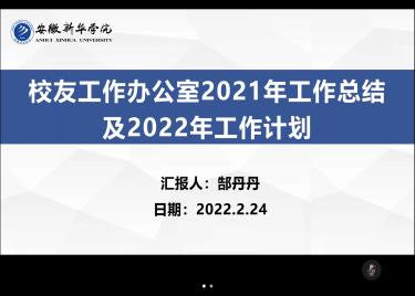 本网讯(通讯员:于墨涵)为全面总结2021年校友工作,扎实推进2022年校友工作,校友工作办公室(以下简称“校友办”)于2022年2月24日召开yl7703永利官网校友会地方校友会2022年线上工作会议,各地方校友分会理事会成员、校友代表及校友工作办公室全体成员参加了本次会议,会议由校友办主任助理郜丹丹主持。