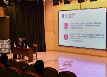 本网讯(通讯员:杨蕊)11月3日下午,艺术学院邀请上海大学上海美术学院教授、博导、中国美术学院首位进站博士后苏金成在文传学院演播厅,作题为“科研项目申报注意事项与经验分享”专题讲座 ,艺术学院院长江河主持,艺术学院全体教师、大创项目同学及其他学院教师共计一百余人参加。