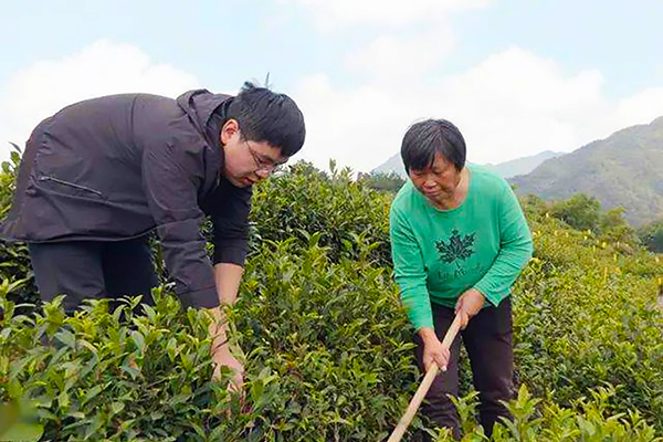 “今年雨水比较充足,茶叶旁边的草长得多,茶叶的管理非常重要。我们把秸秆清理以后深埋茶树根部,作为有机肥使用。”在岳西县巍岭乡巍岭村百亩茶园里,一位憨憨的小伙正在指导农民进行茶园管理,他叫王随新。