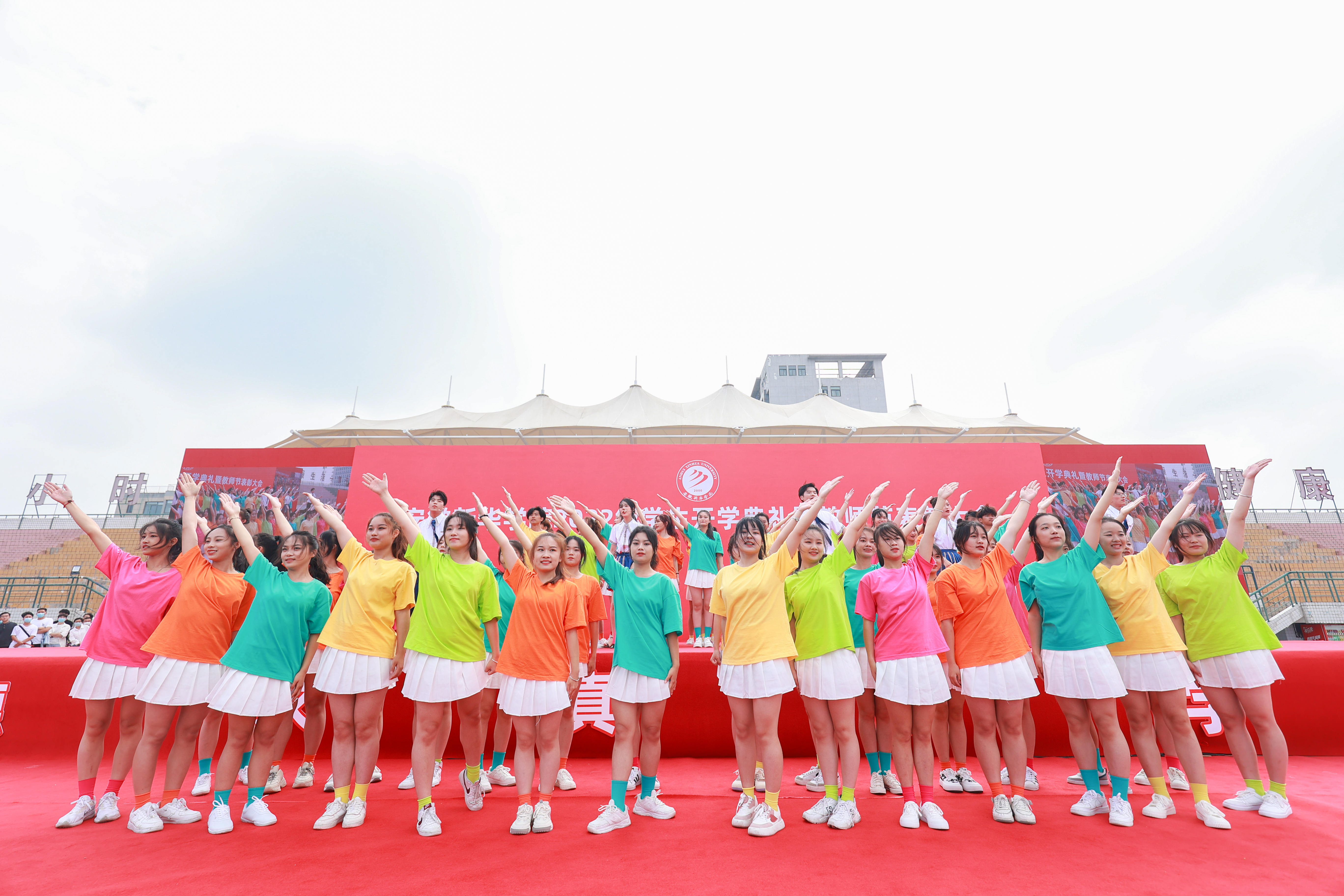 “红日升在东方,其大道满霞光……”上午8点50分,祥云体育场上阳光明媚,秋风和煦,受表彰的老师们在掌声和欢呼声中走过红毯,落席座位。