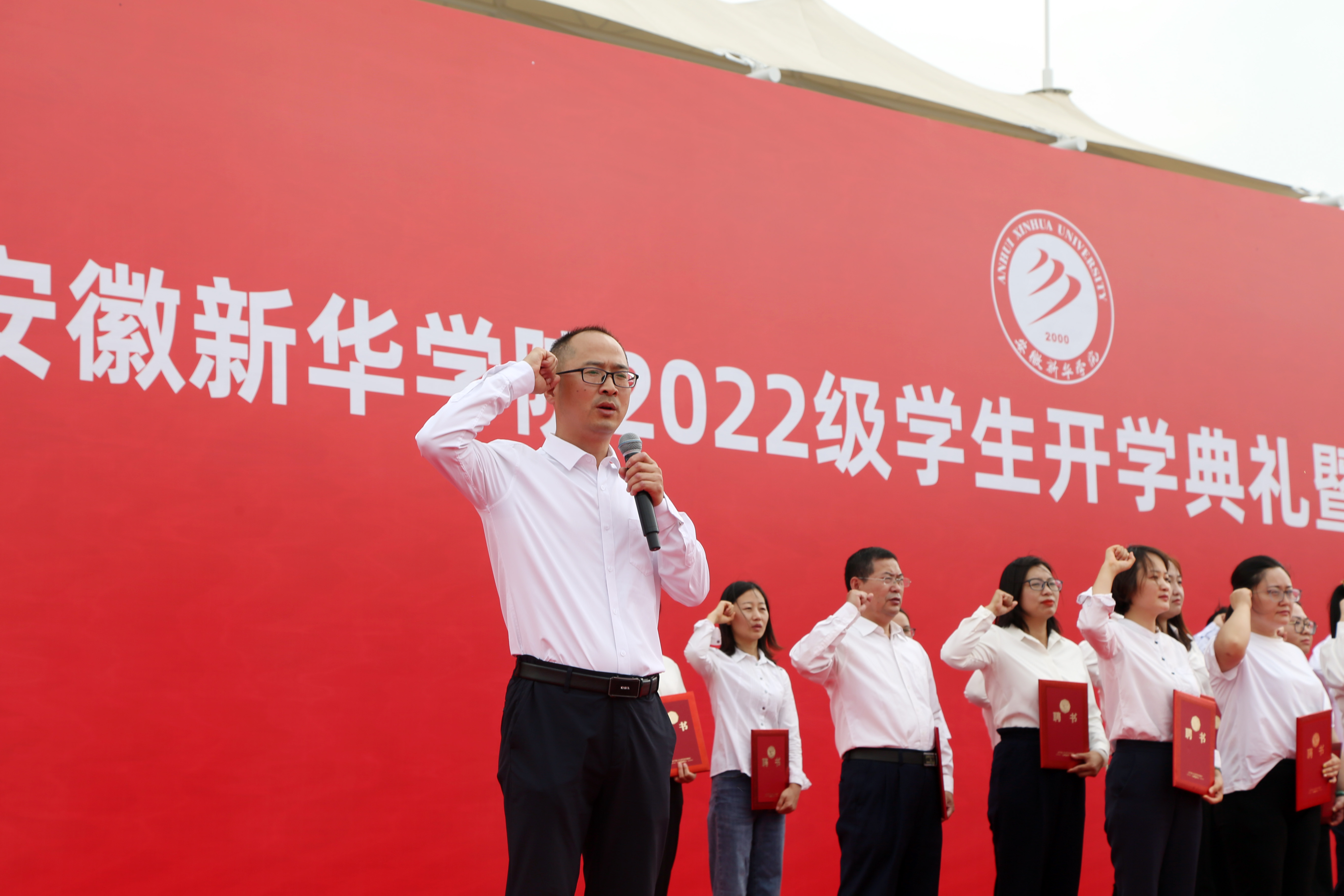 校长赵良庆为新晋教授、副教授、高级辅导员颁发聘书。什么是好老师,是传授知识,是站稳讲台,更是用爱与责任许下的诺言。随后,翟荣兵教授带领2021年获评的教授、副教授、高级辅导员及在场的所有教育工作者一起宣誓。