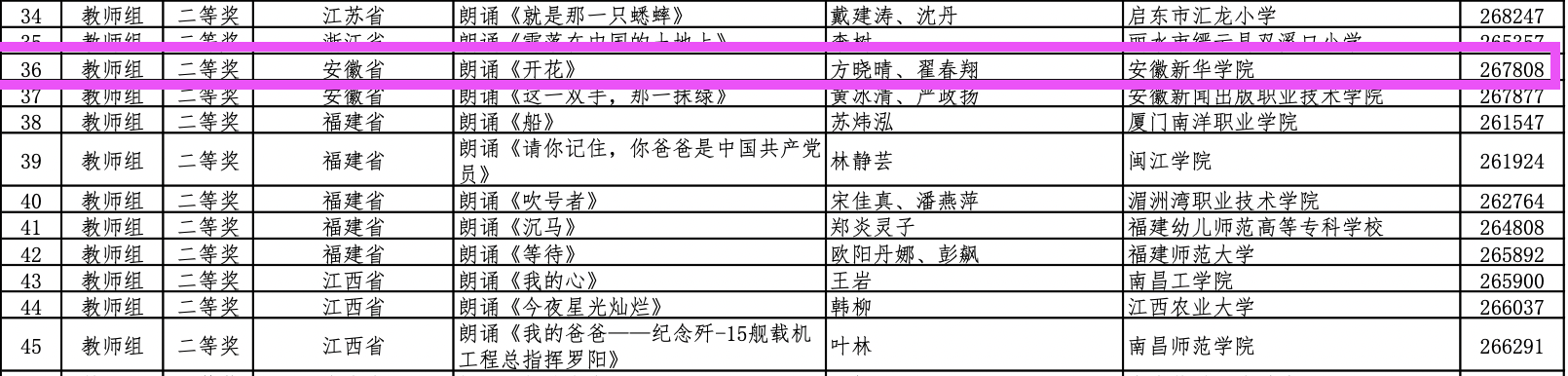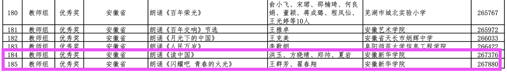 第四届中华经典诵写讲大赛“诵读中国”经典诵读大赛从4月启动以来,全国省级部门选拔推荐和专家评审,7个组别3754个视频作品入围全国复赛、1370个作品入围决赛,330个作品入围总决赛。永利官网教师组的方晓晴、翟春翔初赛作品《开花》披荆斩棘,突出重围,最终代表安徽省入围总决赛。在全国总决赛中两位老师声情并茂地朗诵诗歌作品《一片槐树叶》,情绪传达到位,将诗人思乡盼归的情感表达得淋漓尽致,并荣获全国总决赛二等奖。另外两组《闪耀吧青春的火光》(王群芳 翟春翔)、《读中国》(洪玉 方晓晴 郑帅 夏岩)获得总决赛优秀奖。