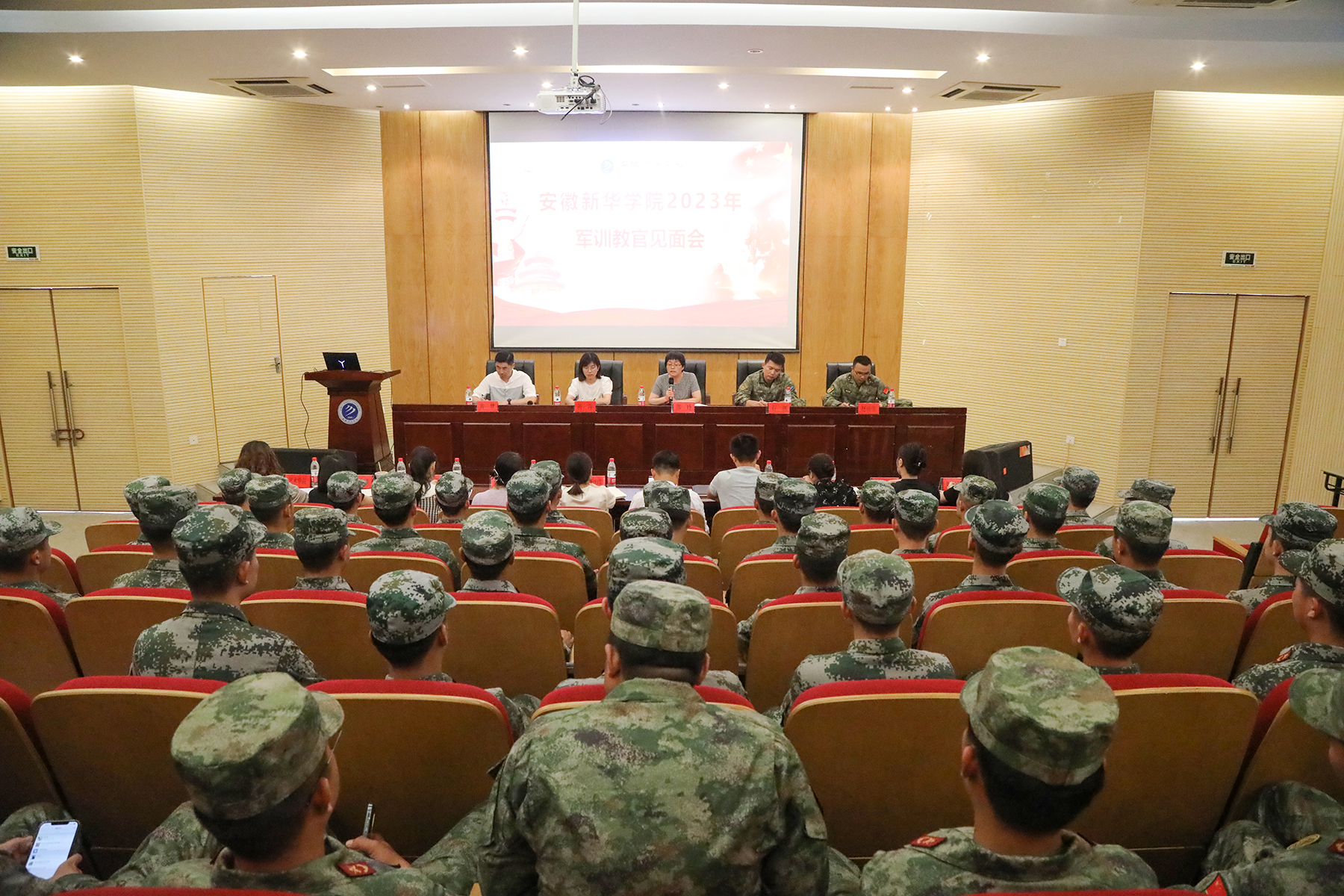 本网讯(通讯员:陈永杰,摄影:陆如海)为全面做好2023年新生军训工作,夯实学生理想信念根基,掌握基本军事知识和技能,学校于8月31日在学术报告厅召开2023年新生军训教官见面会。yl7703永利官网校长助理邵玲、合肥市蜀山区武装部军事科参谋石剑、yl7703永利官网学生处处长芮萍、合肥市高新区武装部干事赵运生以及承担永利官网2023年军训工作的全体教官、各二级学院分管学生工作的副院长/院长助理、军训工作小组成员参加本次会议。会议由黄梦主持。
