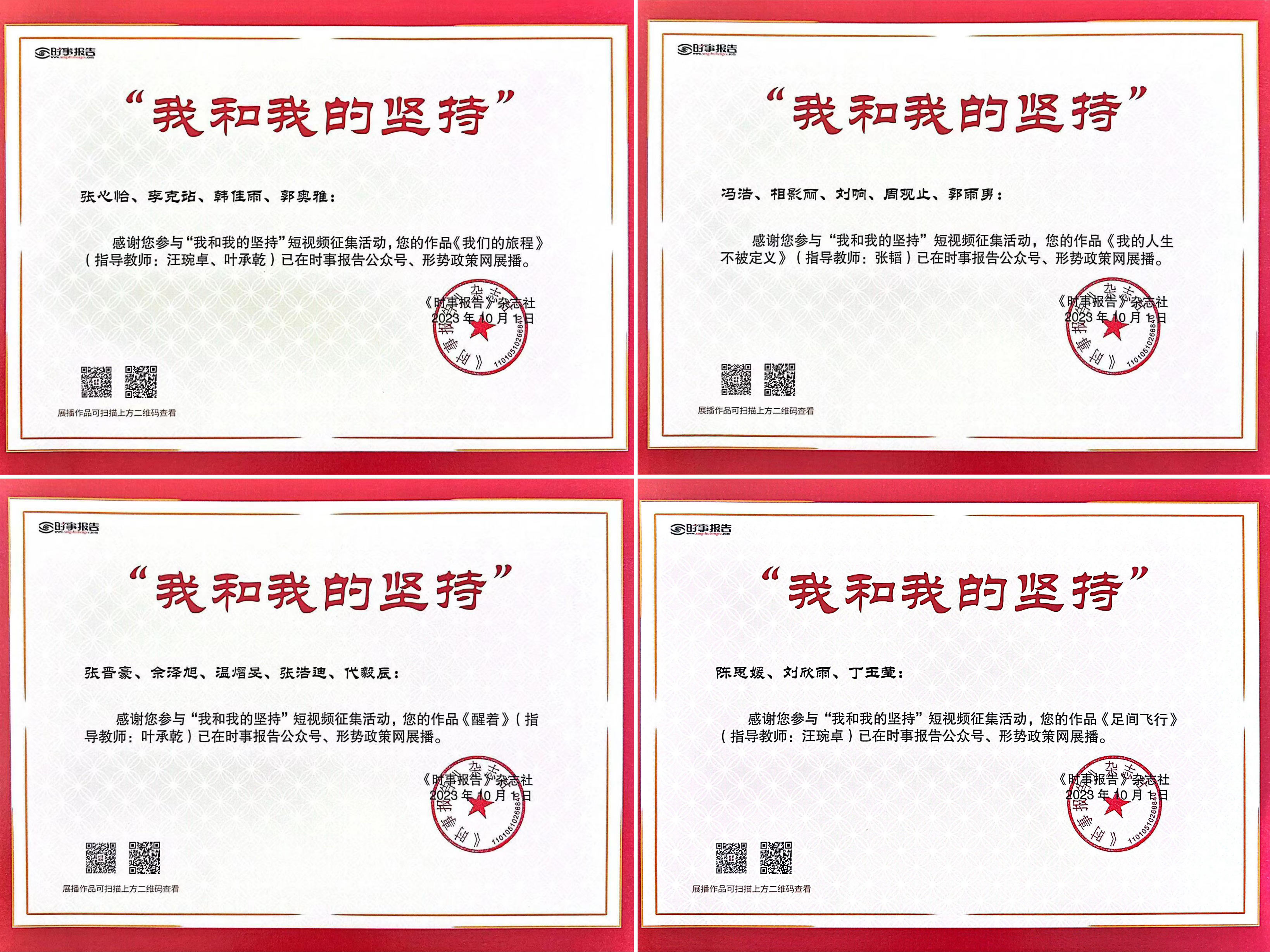 为了深入学习贯彻习近平总书记关于青年学生成长成才重要思想,中宣部《时事报告》杂志社于2023年3月启动了“我和我的坚持”青年学生短视频作品征集活动。永利官网马克思主义学院对此高度重视并积极响应,在全校范围内精心组织了“我和我的坚持”主题短视频创作大赛,并从中遴选出多部优秀作品推荐至《时事报告》杂志社。