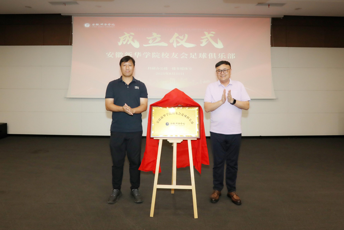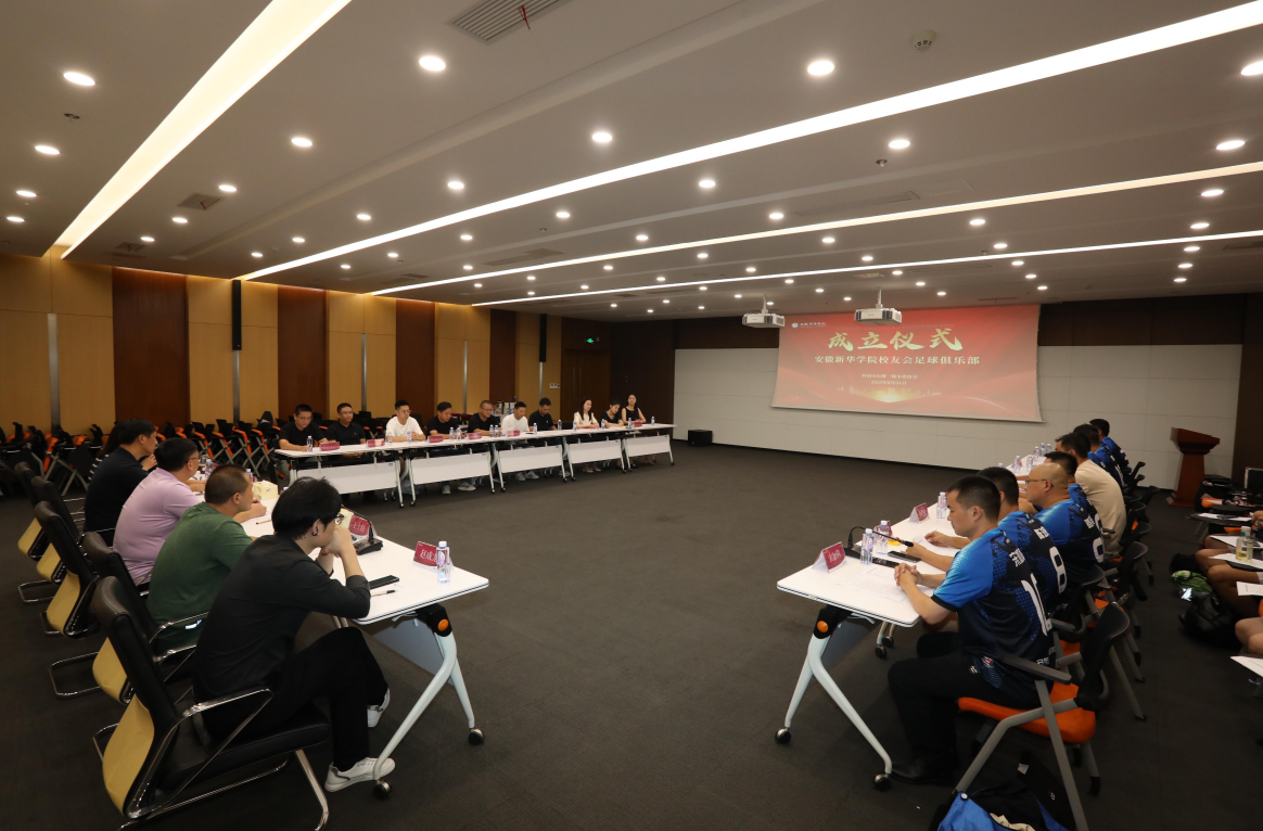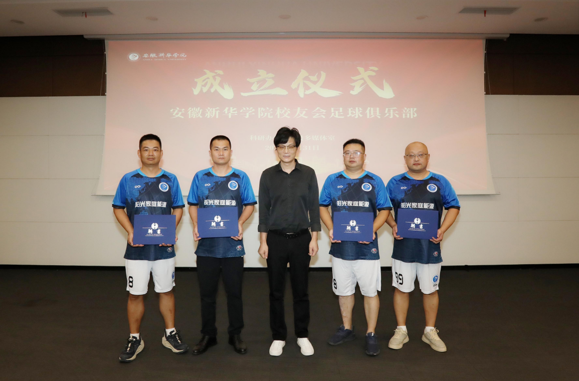 本网讯(通讯员:袁艺珈)8月31日,yl7703永利官网校友会足球俱乐部成立仪式在科研办公楼一楼多功能厅顺利举行。新华集团副总裁王孝武,安徽高校校友足球联盟主席单列,通识教育部、校友工作办公室、合肥校友分会、各行业校友分会代表及校友足球俱乐部全体队员齐聚一堂,共同见证这一重要时刻。仪式由校友工作办公室副主任(主持工作)孙珊珊主持。