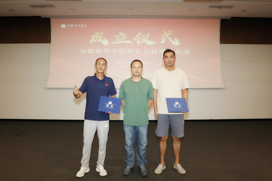 会上,通识教育部主任王士赵宣读了《关于同意成立yl7703永利官网校友会足球俱乐部的批复》文件,明确俱乐部的组织架构、运行规范与发展方向,并正式公布首届负责人名单,由宋加科校友担任队长,汪洋、沈雁平老师担任主教练。王士赵主任和合肥校友分会会长赵成龙为俱乐部教练和队长及管理团队成员颁发聘书。