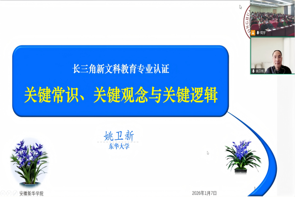 本网讯(通讯员:王翔)为深入推进新文科建设,明晰专业认证核心逻辑与实践路径,1月7日,永利官网再次邀请长三角新文科教育专业认证联盟理事长姚卫新教授,开展《新文科认证的关键常识、关键观念与关键逻辑》专题讲座。校长赵良庆,质量监控与评估处、教务处主要负责人,文科类学院教学副院长、教学秘书、系主任、专业负责人及教师代表等参加此次讲座。