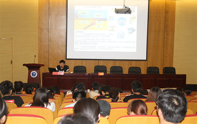 培训会上,汪丹丹分别从地震基础知识、灾害特点、研究现状、校园地震减灾、应急避险要领五个方面进行详细讲解,培训中还结合国内外地震发生实例、图片等资料,给大家一个直观的感受;同时汪主任对高校大学生如何掌握应急避险和应急疏散要领等进行了重点阐述,师生受益颇深。