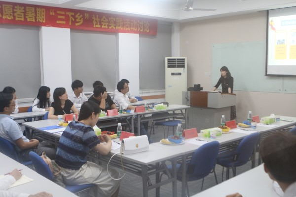 动漫学院团总支书记首先就动漫学院近三年三下乡工作作汇报介绍。汇报主要围绕基本情况、工作亮点和下一步工作计划三个部分展开。汇报指出,经过二十年发展,大学生“三下乡”社会实践活动已成为我国高等教育独具特色的有机组成部分,要站在学习贯彻党的十九大精神、贯彻落实高校思政会议精神以及推进共青团改革攻坚的高度,对这项品牌活动再审视、再思考,在立德树人的大局中,进一步提升活动的政治性、先进性、实效性。接着,动漫学院副院长朱诵贵对动漫学院“三下乡”活动结合专业特色进行了详细介绍。朱诵贵强调,三下乡工作必须坚持紧密结合经济社会发展的实际需要,引导青年学生自觉担负起光荣的时代使命;必须坚持遵循教育教学客观规律和尊重学生实际需求,将三下乡社会实践活动和学科竞赛紧密结合,不断激发青年学生参与社会实践的内生动力;必须坚持建立健全工作机制,注重形成强大合力推动活动纵深开展。