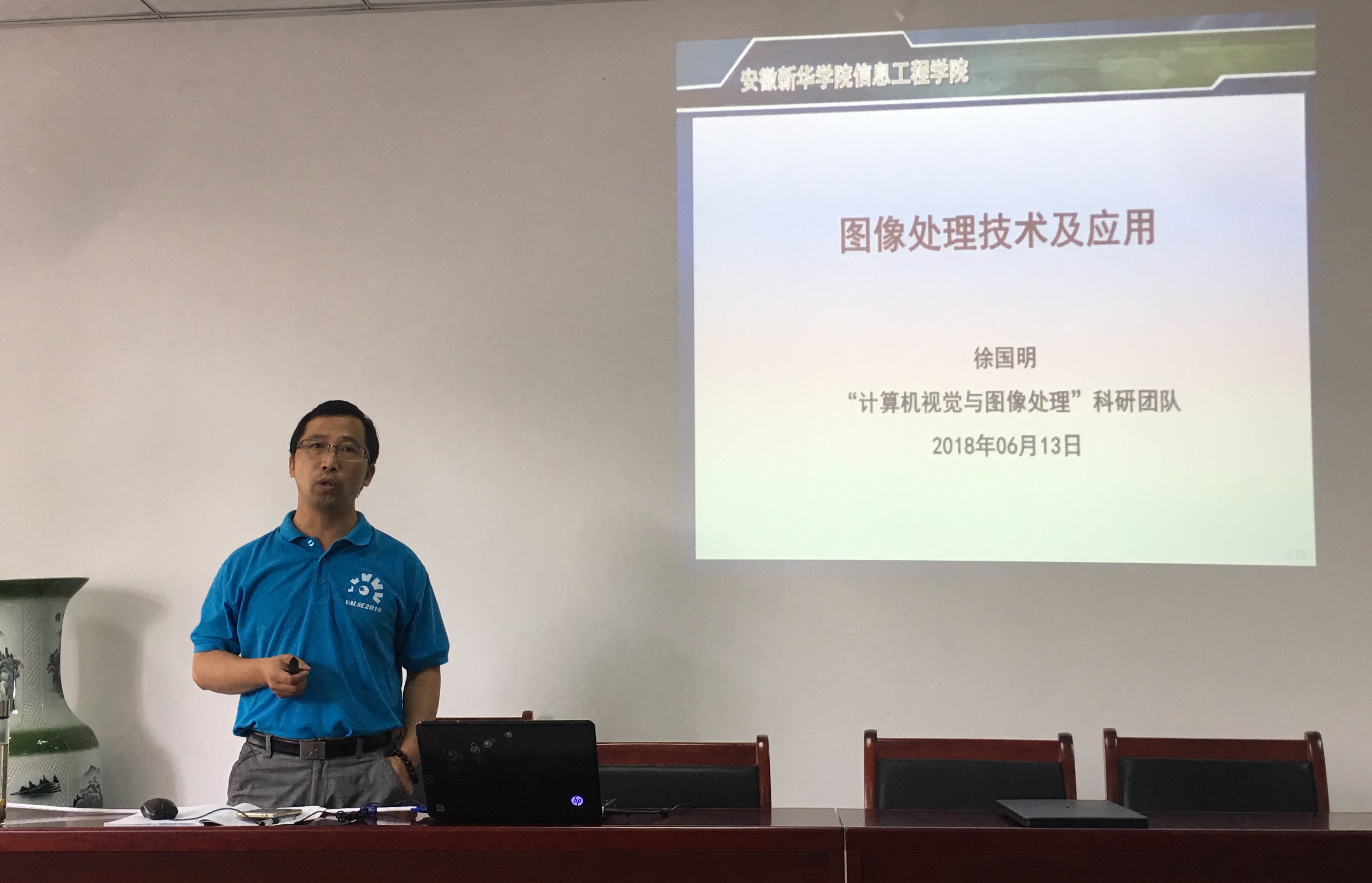 本网讯(通讯员:石文玉)6月13日下午,信息工程学院副教授、计算机科学与技术专业学科带头人徐国明作主题为“图像处理技术及应用”的讲座,信息工程学院教师代表及计算机科学与技术专业部分学生聆听了本次讲座。