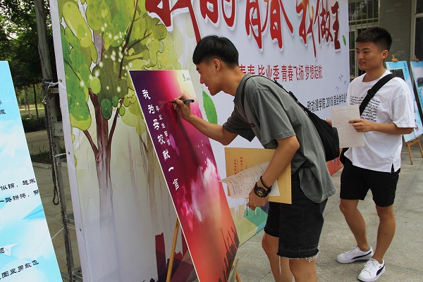 此外,毕业生离校期间,2018届毕业生自发组织,向学院捐赠纪念品,在动漫学院准备的“我为母校献一言”上,毕业生们纷纷表达了对母校美好未来的祝愿。
