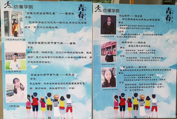 为树立榜样的力量,动漫学院集合优秀就业、考研、专升本、创业等优秀学子开展向榜样学习工作,组织开展优秀学子报告会活动,统计收集优秀毕业生的信息,作为校友会的宝贵资料。