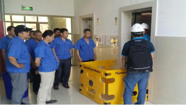 此次培训地点选择在学校住宿人员较集中、人流量较大的29号30号公寓楼,蒂森克虏伯电梯维保厂家技术人员根据高校电梯使用频繁、操作不规范等方面内容详细介绍了电梯的正确使用方法,分析了电梯易发生的故障现象及处理办法,并现场模拟演练电梯进水、发生火警以及人员被困轿厢等多种情况的应急故障处理。参与培训的人员认真听取了工程师的讲解,现场参与提问并开展实操练习,积极掌握电梯的正确使用方法、乘坐安全常识等。