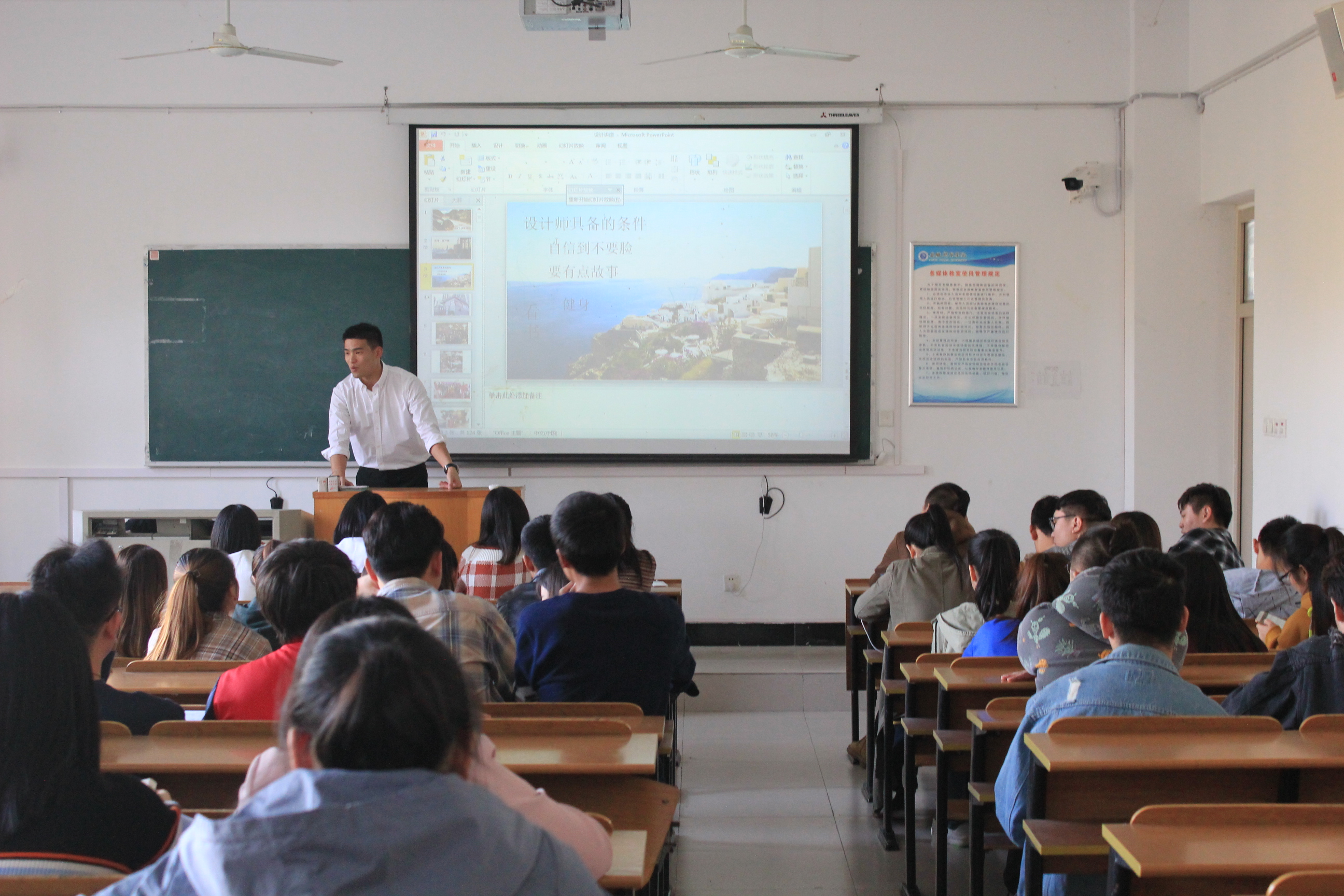 上海平安公司是全球500强企业发展平台,有丰富的客户资源,通过网、电、移一体化的远程销售平台,建立了与客户的直接联系,为客户提供快速、准确、专业的销售与咨询服务。宣讲会上,平安直通公司人事专员孙丽首先介绍了中国平安的企业文化、业务范围及发展方向。会中,孙丽借助PPT就公司的工作职责、任职资格、薪资构成、岗位福利等为同学进行了详细的讲解。燕子山手绘设计工作室是艺术学院2014届毕业生周洋的创业公司,此次重回母校,他希望毕业生们能吃苦耐劳,富有责任心,用扎实的基础知识、良好的工作能力为就业创造更好的机会。