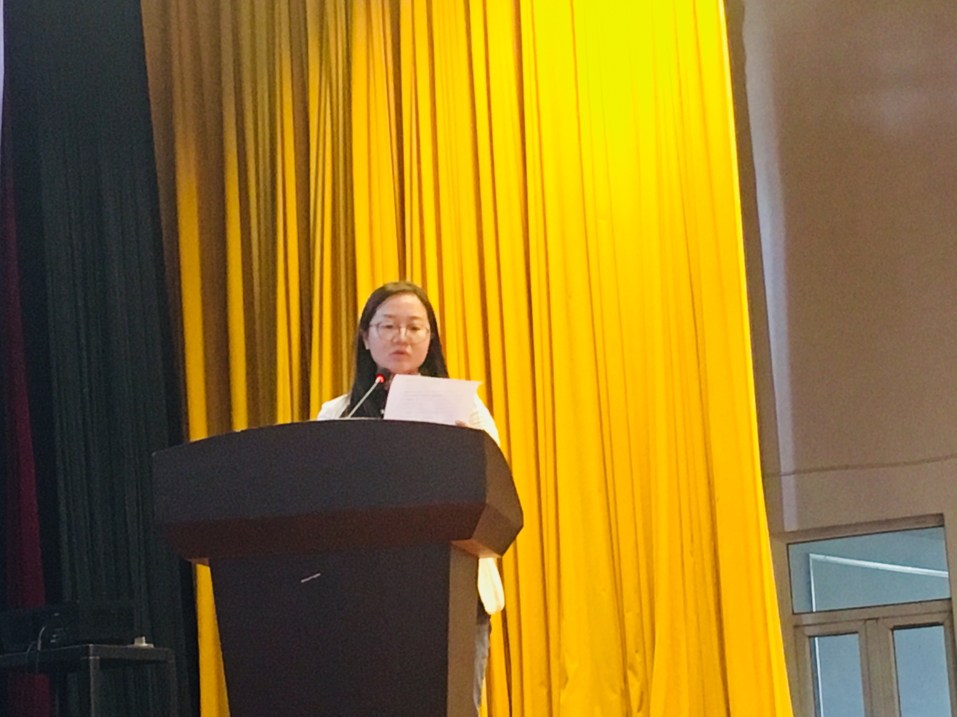 与会全体人员集体观看关于党员活动月的总结视频之后,典礼正式开始。主持人俞士毛首先向全体参会人员表示欢迎,并依次介绍了参加本次大会的领导和教师。