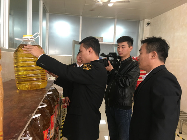 本网讯(通讯员:董梅)为深入推动食品安全工作,保障高校学生身体健康,11月13日上午,合肥市高新区市场监督管理局食药监管科科长王文金、市高新区柏堰食品药品监督管理所所长曹军一行来永利官网开展食品安全工作检查指导,并推选永利官网食堂作为合肥市餐饮亮点单位接受合肥电视台新闻频道《食安合肥》栏目专项采访报道。校总务处副处长卞国锋及相关管理人员全程陪同。