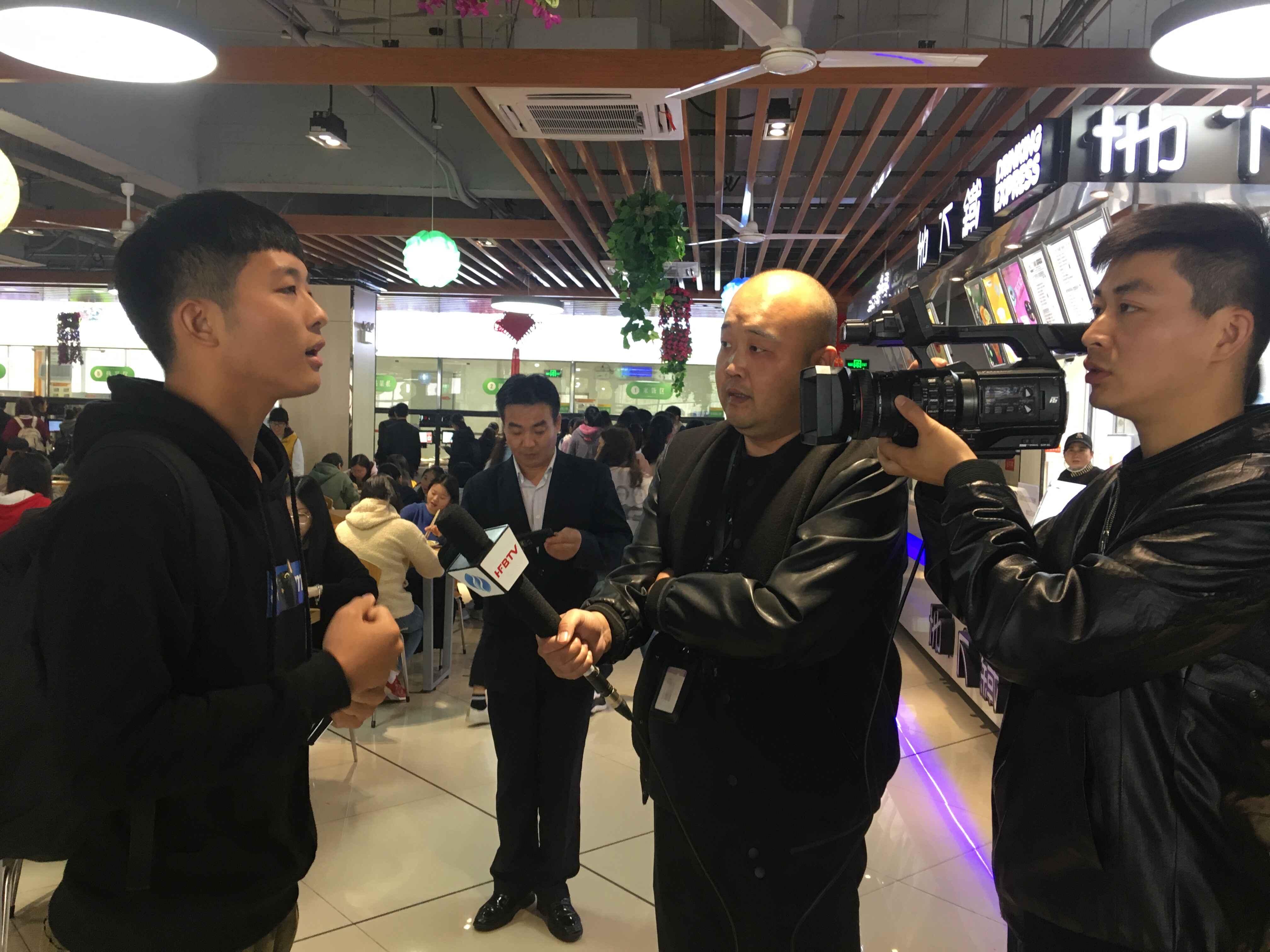 王文金一行前往永利官网二期食堂,就学生食堂的安全管理、菜品供应、食品加工操作规范、食品留样及原材料存储等情况给予现场工作指导,合肥电视台新闻频道《食安合肥》栏目组实时跟踪报道并在就餐现场展开采访。