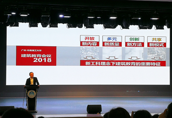 大会云集国内外建筑教育界同仁,在新的机遇和挑战下,共议中国建筑教育的新时代、新征程,共同切磋、交流和探讨中国建筑学学科的新成果和新经验。会上,华南理工大学校方、住房和城乡建设部处长何志方、何镜堂院士、吴硕贤院士等分别致开幕辞。王建国院士以“教指委工作报告”为题,分享了“以本为本”的教育要求及“建筑学专业教指分委会”的工作设想。刘加平院士以“迈向绿色建筑教育新时代”为题,从新时期建筑方针、建筑教育面临的挑战等话题进行了探讨。孙一民教授以“寻找那一撇智慧的光”为题,围绕华南理工大学建筑学院学生团队的多次建筑设计营建成果进行了汇报。吴光庭教授以“毕业设计2.0”为题,分享了中国台湾建筑院校教育课程体系及成果。