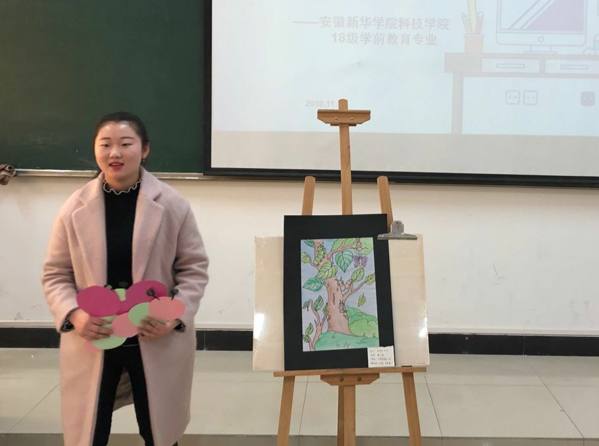 决赛中,参赛的各位选手精神饱满,吐字清晰,发音准确,表述完整,合理运用背景音乐,并且加入了手指操与现场进行互动。还有同学模拟无生课堂进行授课,充分体现了学前教育的专业特色。最后,经过评委的综合评审,来自2018级学前教育2班的杨广琴荣获一等奖和最佳台风奖;2018级学前教育3班的毛琪和朱楠楠获得二等奖且分别获得最佳技法表现奖和最具潜力奖;2018级学前教育1班的陈薇和刘梦琪,2018级学前教育三班的宋土妹获得三等奖。
