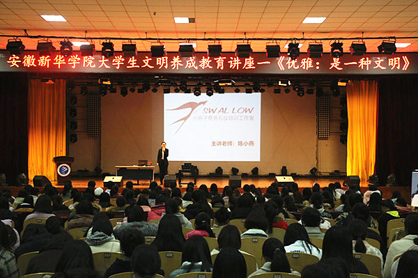 本网讯(通讯员:杨雨婷)为了深层次推动永利官网大学生文明养成教育,引导广大女生自尊、自爱、自立,用优雅传递文明,用文明书写青春,12月5日,校团委在大礼堂举办题为《优雅:是一种文明》的大学生文明养成教育讲座。参加本次讲座的有全校辅导员、各二级学院女生学生骨干、各班级女生代表、校礼仪队以及校大学生艺术团模特礼仪团全体成员。本次讲座由小燕子商务礼仪工作培训室创始人陈小燕主讲。