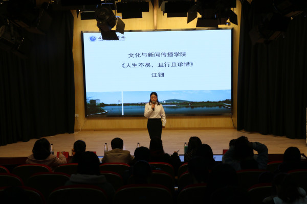 决赛现场以拍手舞表演《夜空中最闪亮的星》拉开序幕,来自于各二级学院的11名选手依次上台,与在场师生分享成长路上的挫折与压力,展示自己的精彩蜕变,将成长故事深情演绎、娓娓道来。