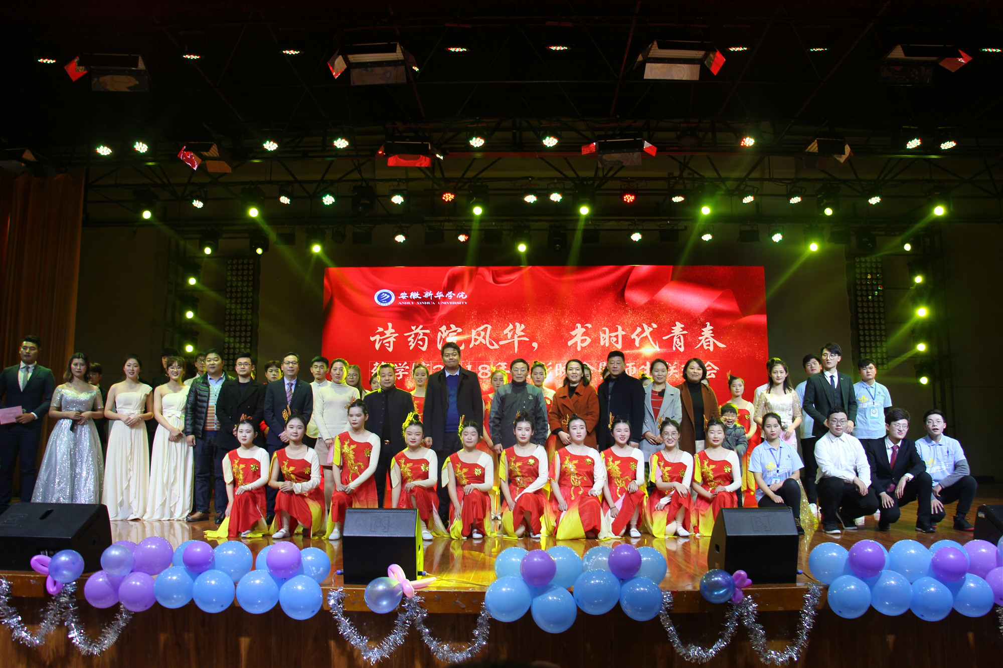 本网讯(通讯员:赵影、刘千会)12月11日晚上,药学院2018“诗药院风华,书时代青春”表彰暨师生联欢会在校大礼堂举行。出席本次活动的有药学院院长张国升,安徽省药品零售行业协会副会长,安徽国胜大药房连锁有限公司董事长何家伦、人力资源部经理沈琴、人事总监孙山,商学院行政副院长王飞,药学院行政副院长余立新,通识教育部主任助理何亚梅,药学院院长助理陶阿丽,合肥高新区志愿服务站主任姬国印以及药学院全体教师。
