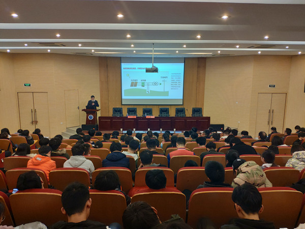 徐君首先通过雾霾、全球变暖等事例阐述了大力发展光伏产业的必要性,介绍了全球光伏发展及应用情况,包括亚洲、欧洲、美洲等地的太阳能装机容量等,并从专业的角度,为大家解读了光伏发电主要类型及应用,对光伏产业的未来发展进行了展望。最后,徐君向师生们详细介绍了电子通信工程学院校企合作基地“阳光电源股份有限公司”的概况、业务范围和发展现状等。徐君表示,yl7703永利官网电子通信工程学院和阳光电源股份有限公司一直保持着良好的合作关系,欢迎电子通信工程学院的学生继续到公司开展实习实训。