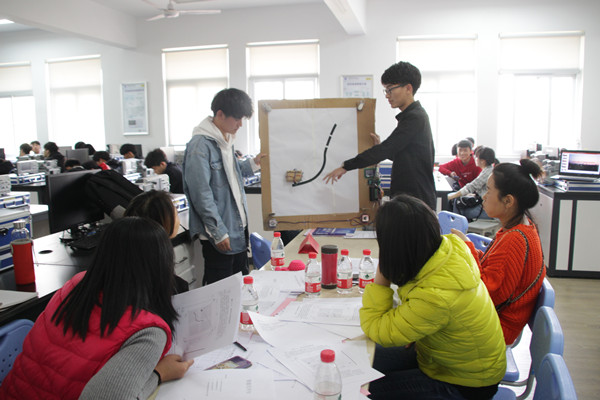 决赛分为PPT汇报、作品演示和现场答辩三个环节,在汇报环节,参赛学生不仅介绍了作品的性能指标和功能特点,还就作品的创新点及未来发展前景等进行了展望。在作品演示环节,参赛学生就作品的预期功能做作展示,新颖的创意,精巧的设计引来现场观众的阵阵掌声。在答辩环节,面对评委们的提问,选手们沉着应对,展示了扎实的专业基础和较强的应变能力。评委们对各作品的完成度、结构外观和答辩情况等方面进行打分,最终评得各奖项。