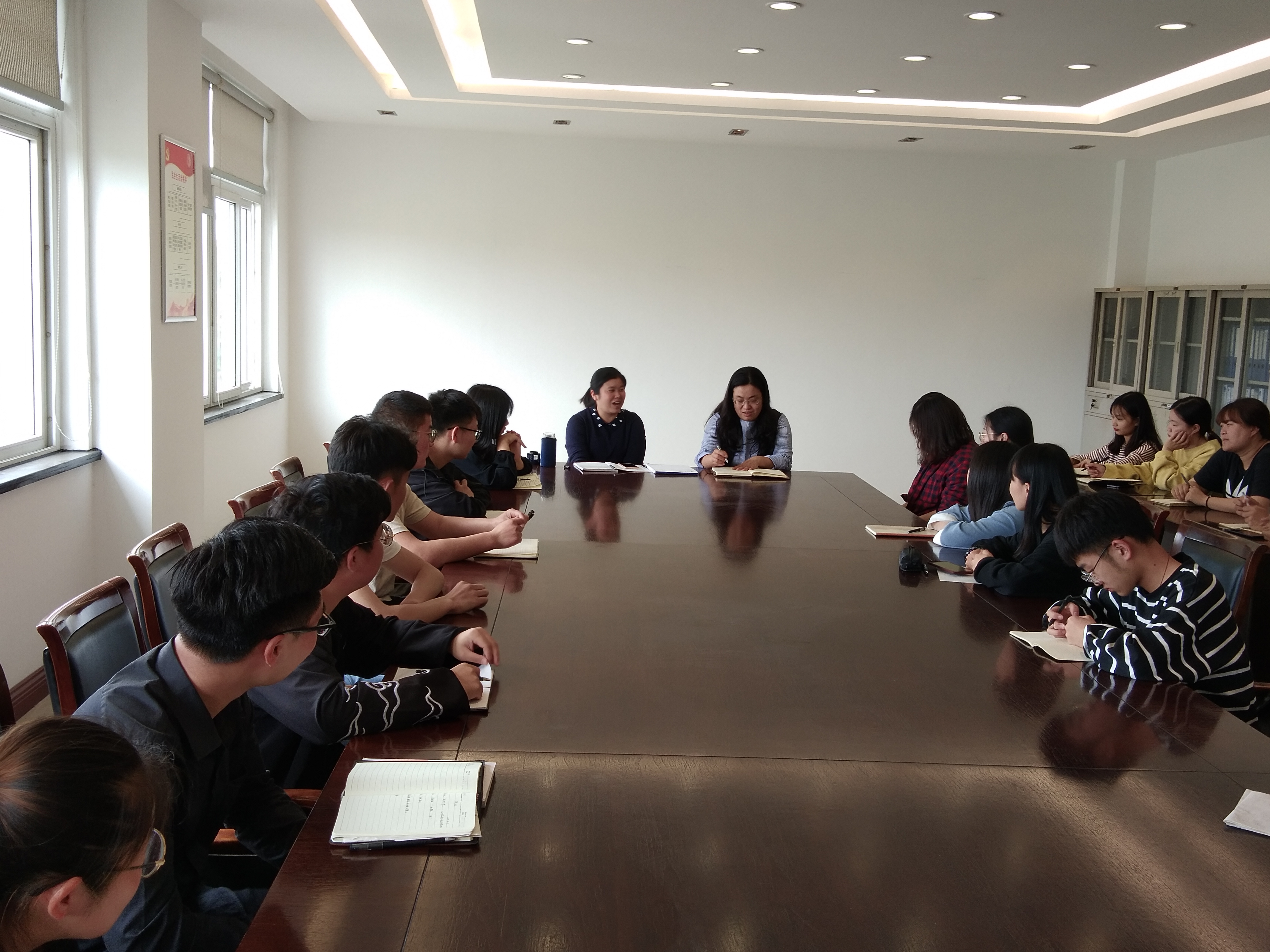 本网讯(通讯员:沈跃龙)为了更好的推动学校思政教育改革,办好思政课程,5月6日中午,思政课学生座谈会在教学二号楼409会议室召开。马克思主义学院副院长董丽娟主持会议,教研室副主任刘丽娟、沈跃龙及部分教师代表参加了本次座谈会。