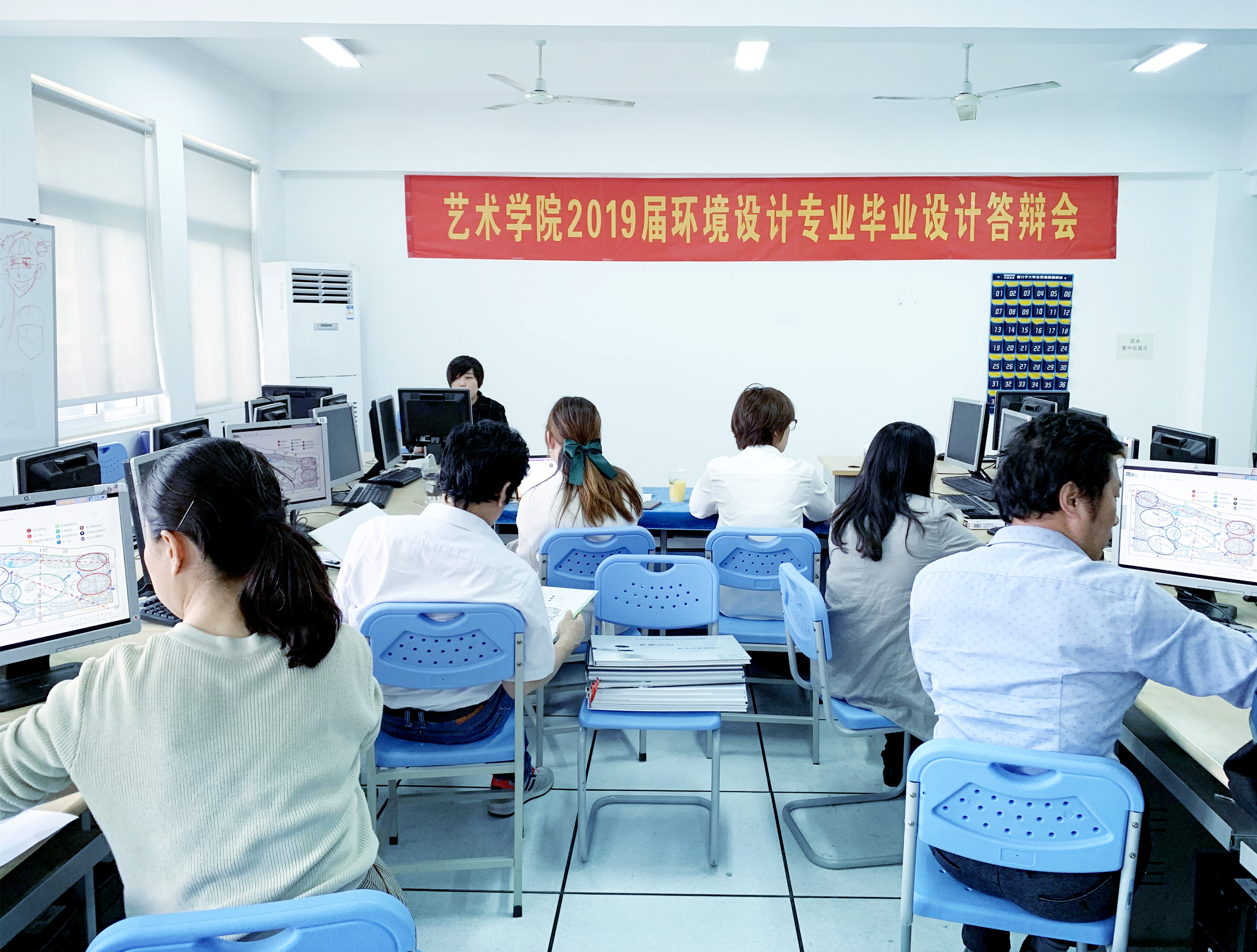 艺术学院高度重视本次毕业设计答辩,制定了详细的答辩工作方案,并组成了6个答辩评审小组,严格审核学生的毕业设计质量。答辩会上每位学生答辩时间是12分钟,其中6分钟用于学生陈述毕业设计作品,6分钟用于评审教师提问与答疑。答辩学生通过精心准备的演示文稿、画册、动画等展示自己的作品,在学生完成作品展示后,评审老师针对学生毕业设计作品中的不足之处提出修改意见,并对优秀作品予以表扬鼓励。