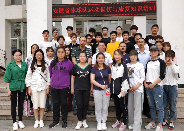 本网讯(通讯员:姚晶晶)5月16日上午,安徽省冰球队“运动损伤与康复知识培训”专题讲座在永利官网举办。此次培训特邀前国家竞走队队医刘飞主讲,出席本次培训讲座的有安徽省田径游泳管理中心张蕾、张强,通识教育部主任王士赵。轮滑(冰球)运动管理中心主任张爱臣,全体轮滑(冰球)队队员,轮滑(冰球)运动管理中心全体教师及部分体育教师参加了此次培训。