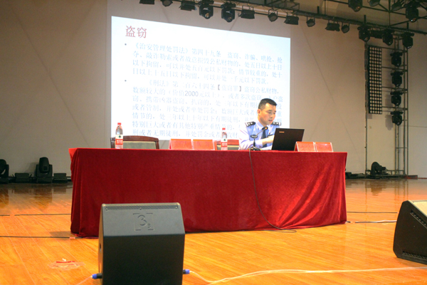 高新派出所陈建所长从学校常见的打架斗殴、盗窃、失火行为、电信网络诈骗、传播谣言、破坏计算机系统等几个方面,结合身边活生生的案例给全体师生上了一堂生动的法制教育课。授课内容生动翔实、通俗易懂,事例鲜活、入理透彻,以案释法、以法论事,贴近实际,贴近学校,收到了较好的效果。