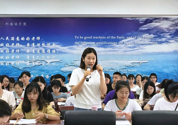 会议初始,由外国语学院党总支副书记杨光发表讲话,杨光指出毕业的党员同志在今后的工作与生活中要坚持“三有”,即“有定力”、“有反思”、“有提升”;要学会改变、适应社会,用人格赢得尊重,把握机会,脚踏实地。这样才能在新的岗位上取得更大发展,在“追梦、逐梦、圆梦”中为党和人民的事业做出更大贡献。接着,由毕业生党员们分享自己在大学生涯中对于学习,生活以及工作、思想中的感悟并与非毕业生党员们进行经验交流,为非毕业生党员们提供宝贵经验。紧接着,外国语学院副院长兼党总支纪律委员王志宏向在座毕业生党员们提出在即将踏上新的岗位之际,牢记党员身份,在行动上、思想上始终与党中央保持一致;各非毕业生党员要努力学习,积极进步,为今后的生活打下良好基础,