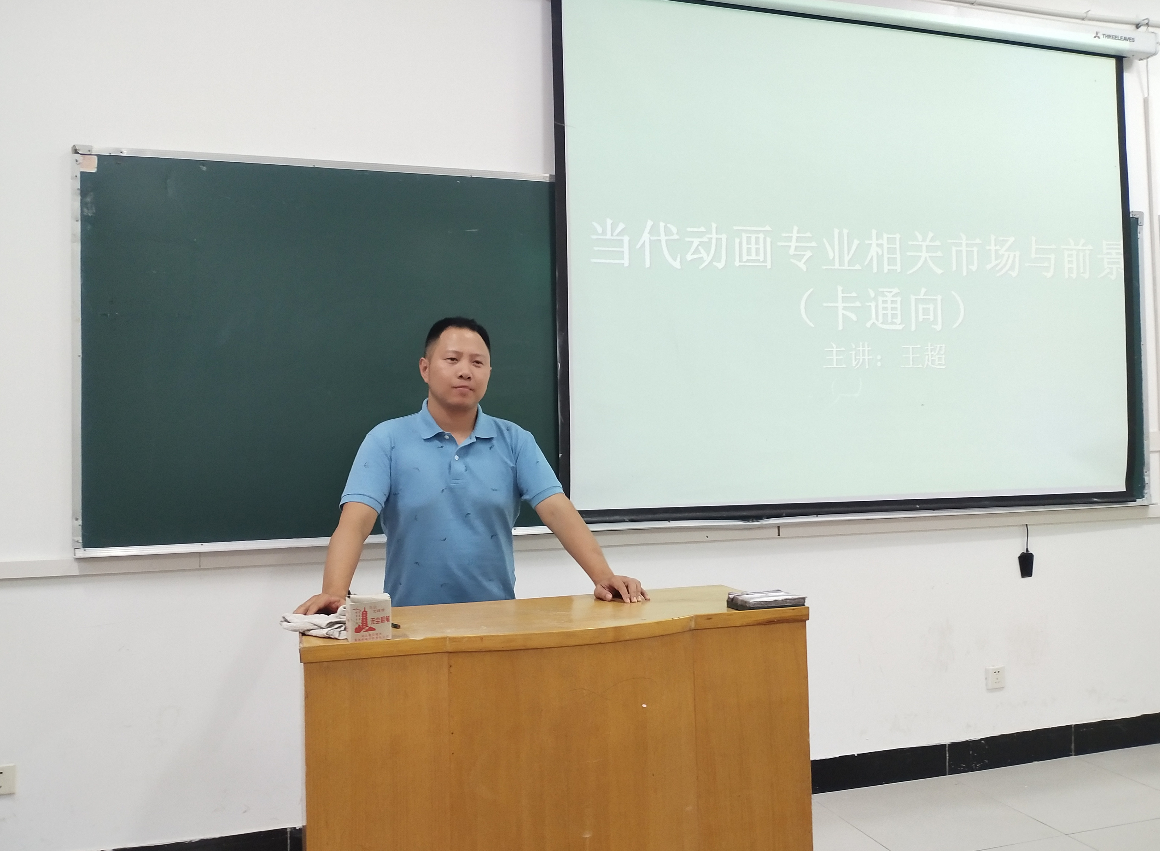 王超先生根据自己在安徽出版集团十余年的工作经历以及在安徽省内外多家动漫相关的制作公司合作和设计的经历,着重分析了广告动画、插画动画、漫改动画等多种动画形式在商业市场的前景,结合真实案例、自身创作项目经历,介绍了动画创作的经验,并对社会外界人士对动画就业和市场认识的一些误区进行和分析和纠正,针对艺术学院动画系学生的学习进行了模块化指导,对学生的未来学习和就业指明方向,得到全体师生的一致好评。