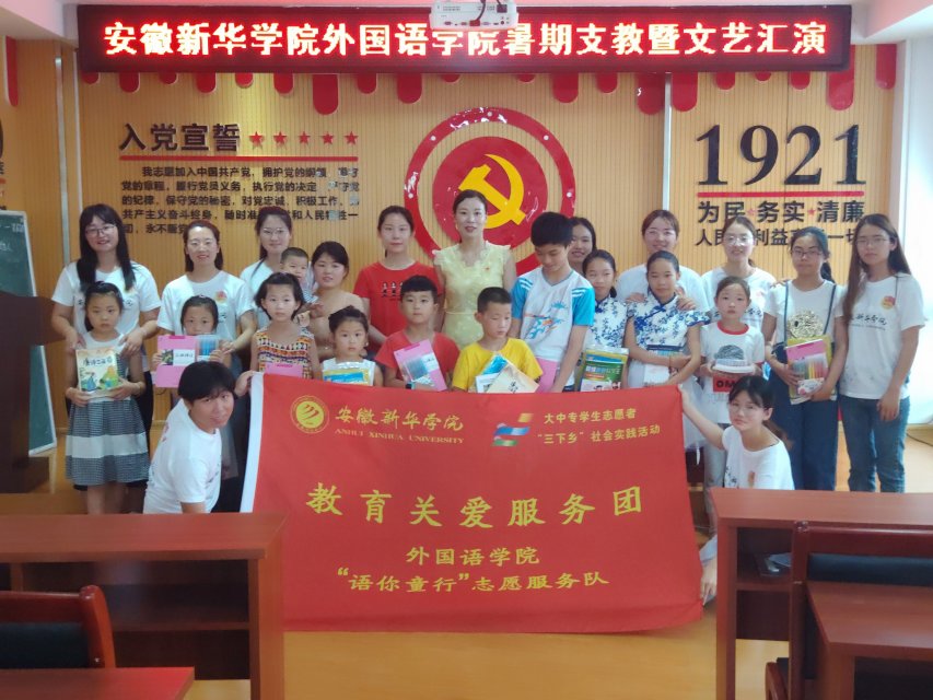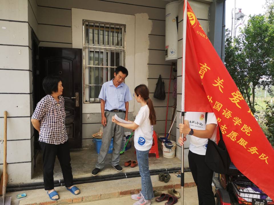 本网讯(通讯员:汪凌汇)为贯彻党的精神,落实团中央关于大学生暑期“三下乡”活动的通知,围绕永利官网“厚德、求真、博学、创新”的校训精神,践行科学发展观理念,促进大学生接触社会、了解国情,培养青年大学生的历史使命感和社会责任感。6月25日,外国语学院 “语你童行”志愿服务队走进巢湖市中庙街道河西村,开展暑期“三下乡”活动。外国语学院团总支书记陈丽、副书记汪凌汇及十名学生志愿者参加了活动。