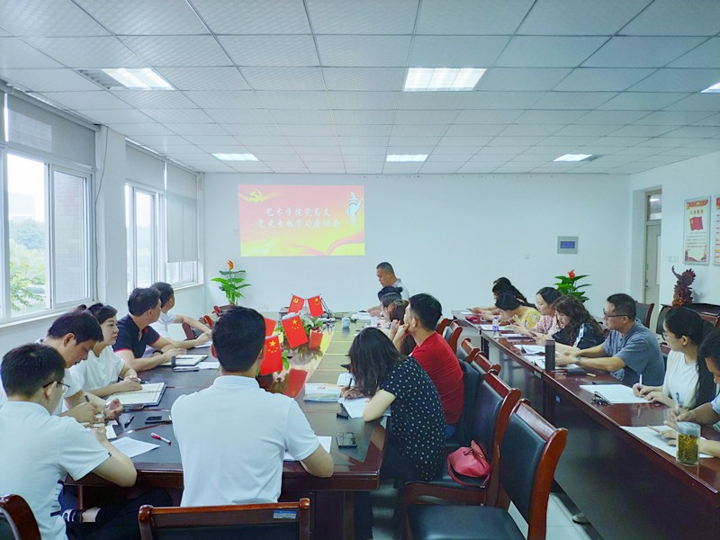 本网讯(通讯员:张大勇)为深入学习贯彻习近平新时代中国特色社会主义思想和党的十九大精神,扎实开展“不忘初心、牢记使命”主题教育,根据中央、省委关于隆重庆祝新中国成立70周年通知精神,及校党委《关于开展“全省党员干部党史教育日活动”的通知》要求,7月9日上午,艺术学院党总支于在艺术学院会议室召开党支知识专题座谈会,艺术学院党总支书记、执行院长许存福,艺术学院党总支副书记、院长助理郑妮出席了会议。