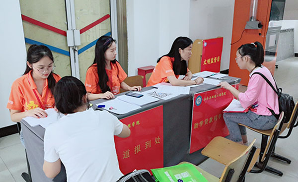 教师及志愿者们热情的接待为新生们消去了初入华园的迷茫和无助。迎新工作热火朝天进行中,华园里到处是穿梭的志愿者身影。