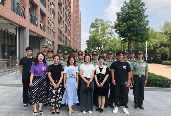 柯姗姗带领新生班辅导员为军训教官送去了节日的祝福和问候,并向教官们赠送了胖大海、风油精等节日礼物,代表全体新生向教官表达了感谢,祝愿教官们节日快乐。