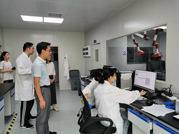 在广州广电计量检测股份有限公司合肥分公司实验室参观过程中,公司实验室主管对公司的资质、实验室布局、分析仪器精准度、实验人员培训流程等做了详细的介绍,邵玲还就实习人员的安全保障,农产品安全问题的与王继忠做了交流探讨。