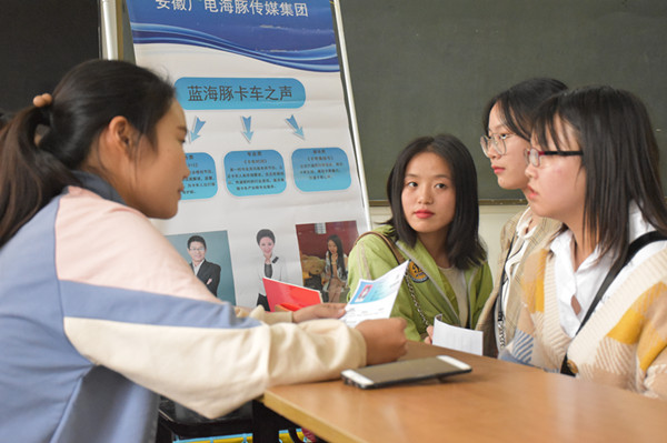 本网讯(通讯员:宋姣)10月16日下午,文化与新闻传播学院举办2020届毕业生就业双选会。本次招聘会邀请了万家热线,安徽优邦学教育科技有限公司等十余家用人单位参加,共计提供100多个岗位,主要涉及记者、教师、主持人、文案策划等多个岗位。我院汉语言文学、新闻学、播音与主持以及广告学专业,共计300多名毕业生参加双选会。
