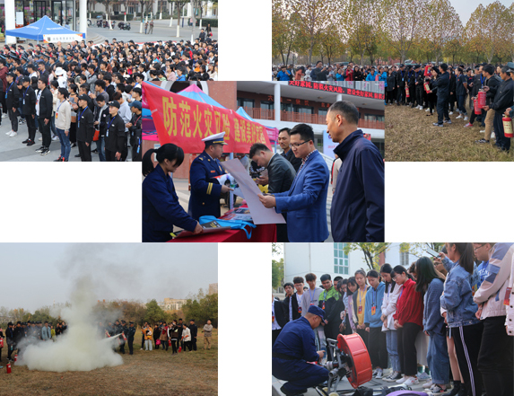 本网讯(通讯员:周冕)在第29个全国“119”消防宣传日来临之际,为进一步做好永利官网消防安全工作,提高全校火灾防控能力,普及火灾防范常识,增强师生的消防安全意识。11月8日下午,以“防范火灾风险、共建美好家园”为主题的“119”消防宣传月活动启动仪式在二期文化广场举行,高新区消防大队主任赵俊杰、校长助理贺行佳及二级学院、相关处室负责人出席了启动仪式。校消防重点单位代表、二级学院师生代表、经营户、宿管员、校卫队、消防志愿者、护校队等五百余人参加了启动仪式。仪式由保卫处副处长仇陶主持。