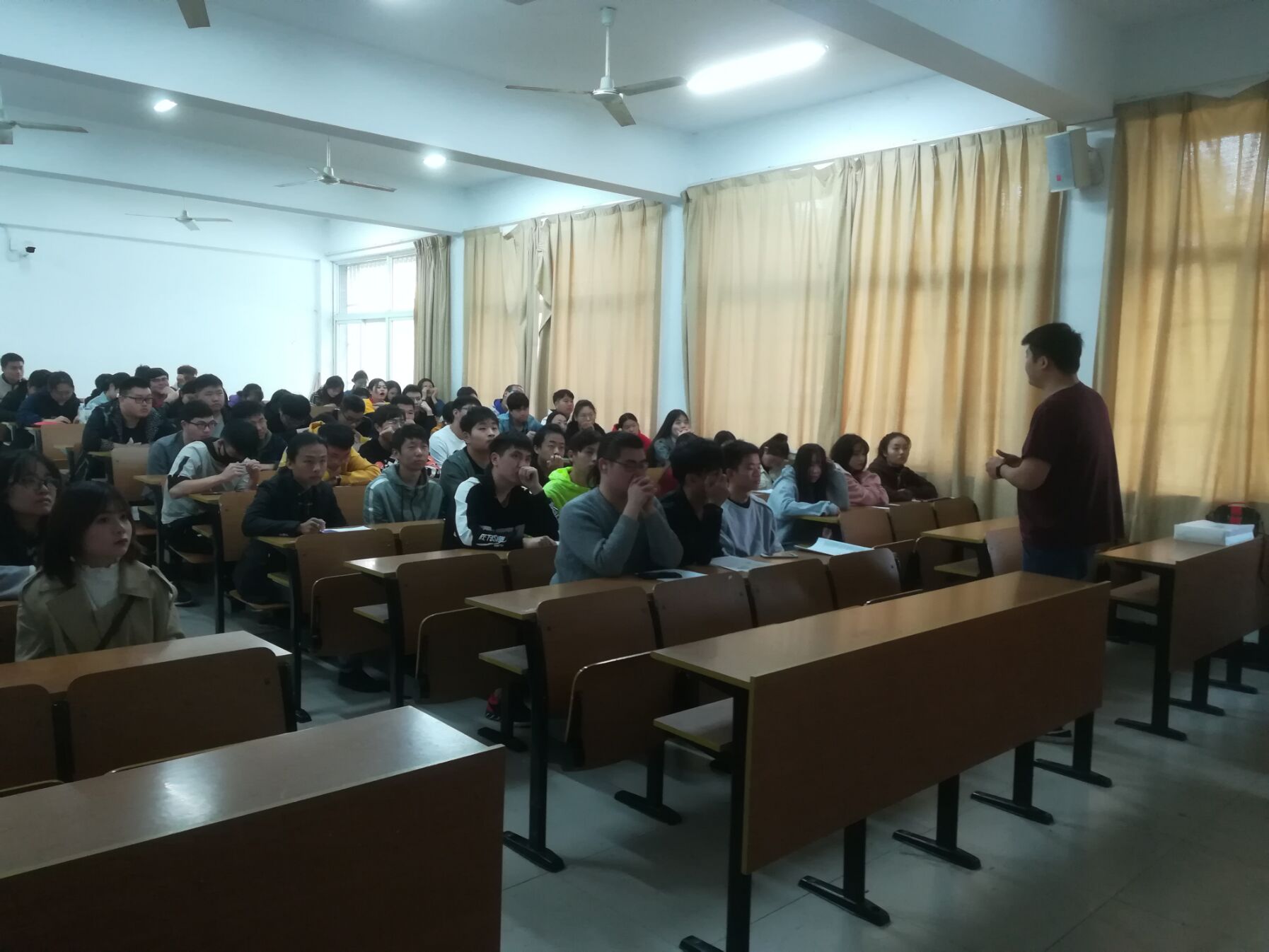 该司人力资源部李经理向我们介绍了自己和其所在的公司,还与即将步入社会的各位同学分享自己的求职经历与经验分享。紧接着,介绍了公司的招聘方式及人才培养方案,其中包括从校园招聘、社会招聘和基层招聘,从中引进人才,然后依据个人能力以及公司发展需求对相关人员进行人才培养。随后李经理给现场同学进行了一个简短的答疑交流环节。同学们就职业发展、晋升道路、薪资待遇等进行踊跃提问。李经理给每位同学都给予了详细的回答并给出建议。最后毕业生结合单位需求递交简历并和用人单位深入交流。