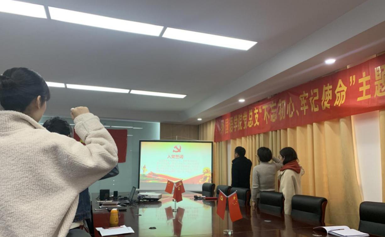 本网讯(通讯员:郭晓菊)11月26日中午,外国语学院党总支组织开展“不忘初心、牢记使命”革命传统主题教育活动。党总支副书记杨光、组织委员郝亮、宣传委员郭晓菊、青年委员陈丽、组织员李靖以及全体教师党员参加学习。活动由杨光主持。