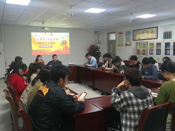 财会与金融学院通过一系列的宣传讲解消防知识,呼吁同学们关注消防,关爱生命。财会与金融学院团总支、学生会组织全院各班级安全委员召开消防安全主题会,通过PPT讲解、观看视频等方式,强调消防安全对于构建平安校园的重要意义,会议上要求各班级安全委员在班级内召开主题班会,将会议中的要求传达给班级学生。