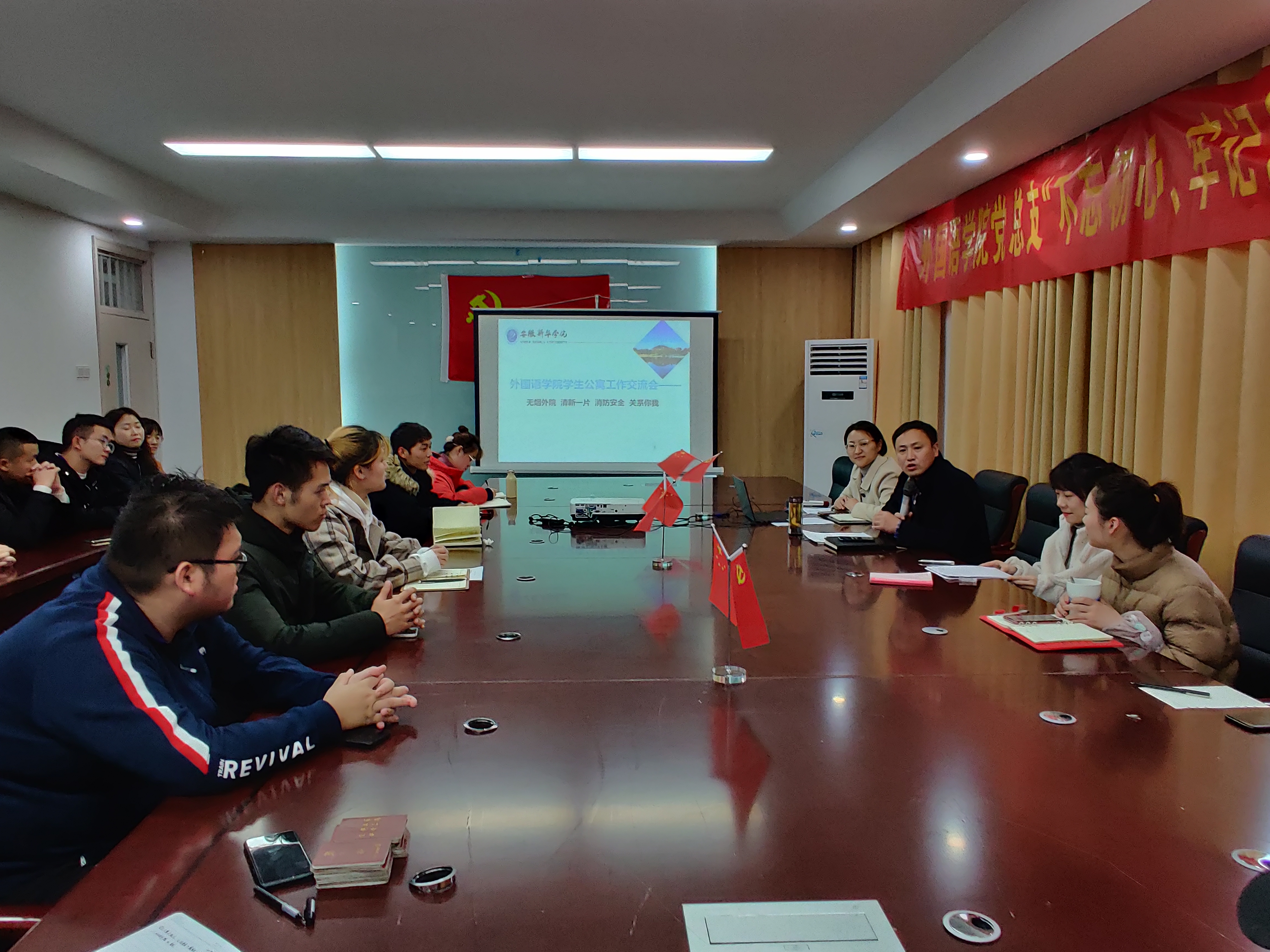 会议中,学管秘书陈丽将“119”消防宣传月和“公寓+”活动前期成果进行了展示,并结合外国语学院开展的“寝室风采大赛”和“共建无烟外院”安排了下一阶段的公寓安全管理的重点工作,要求学生党员要在公寓中发挥榜样的作用,对于挂牌的党员宿舍将不定期进行抽查。同时要求各公寓进行消防安全自检工作,做到无烟、无大功率电器、无私拉电线、杜绝晚归不归情况。